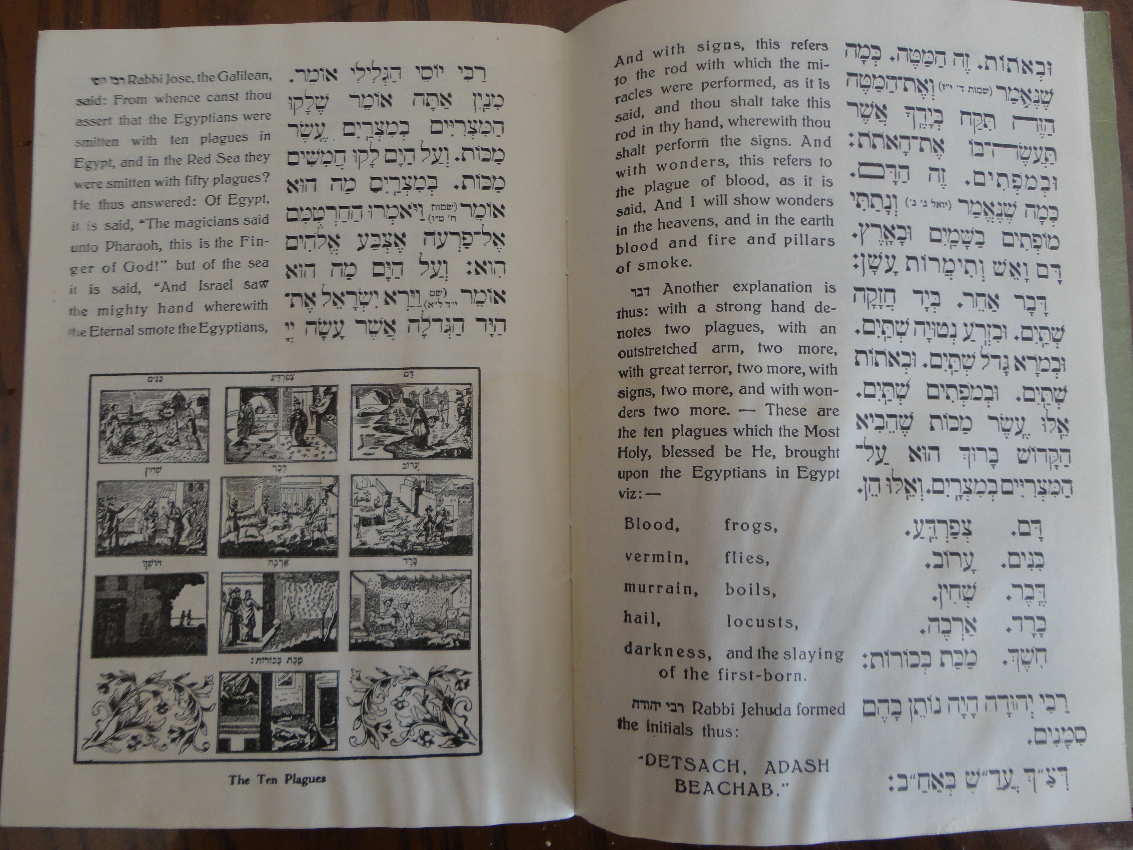 The Hagadah reads from right to left in Hebraic fashion. It is the story of God’s deliverance of the Jewish people down through the ages. Does some of this sound familiar?