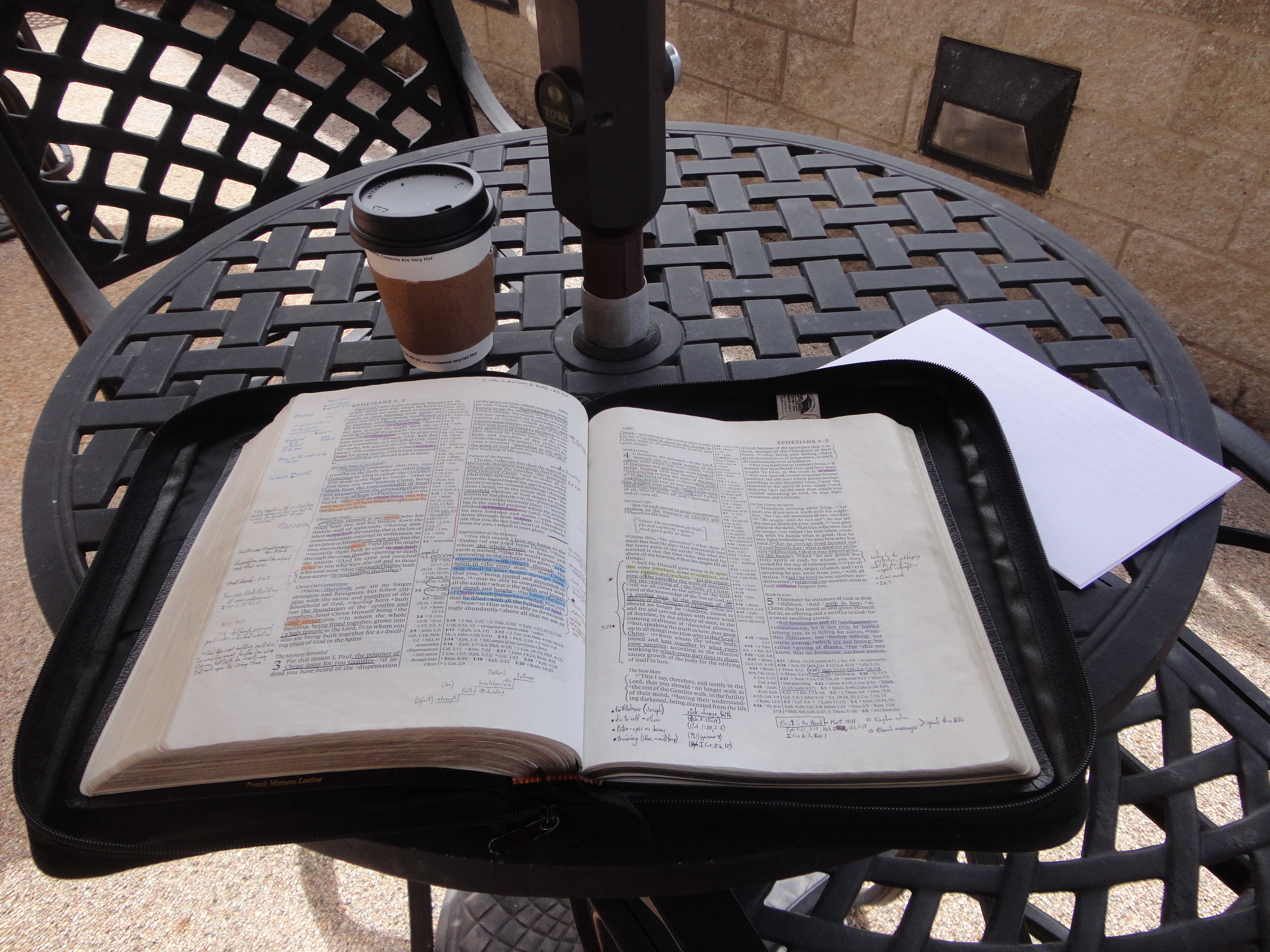 I did some Bible study in Ephesians on the outside patio.